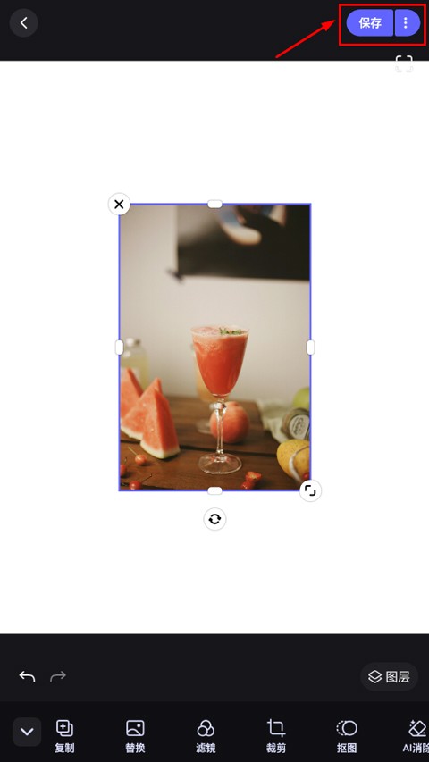 5、应用支持调整图片大小,用户可插入多张图片进行拼图制,制作好后点击右上角”保存“按钮。
