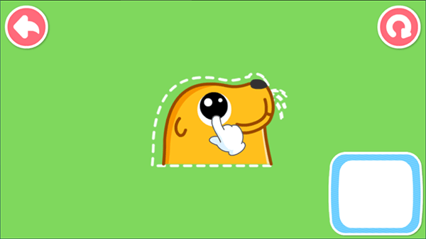 3、将右下图块拖入虚线框,完成物品拼合认知任务。