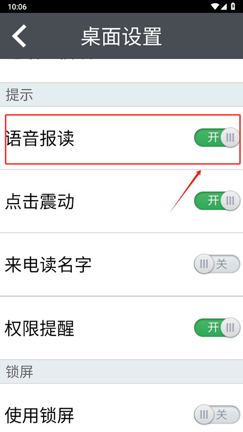 4、桌面管理内开启语音提示功能,即可使用读屏助手。