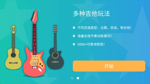 2、多种吉他玩法不同吉他类型:古典,民谣,电吉他!海量吉他节奏训练模式,超过2000+可查询和弦。