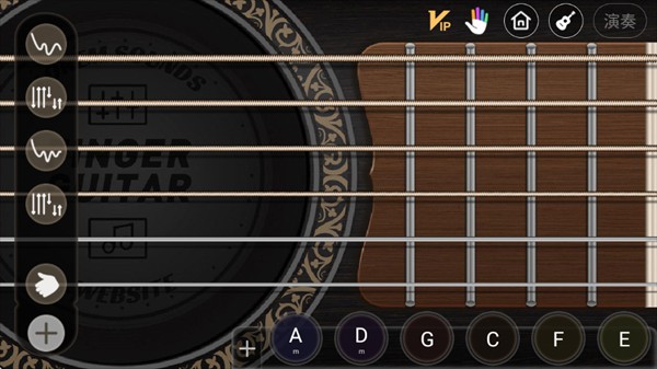 1、模拟演奏:横放手机,用手指拨动屏幕模拟吉他弹奏,显示琴弦和指法,操作直观。