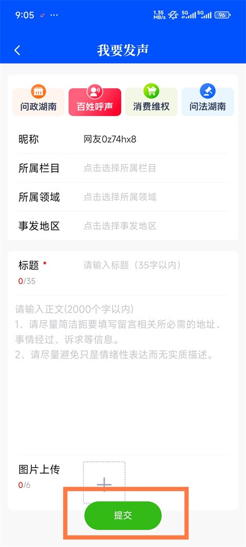 1、点击“百姓呼声”板块,开启意见留言通道。
