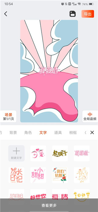 4、根据自己的需要添加背景、文字、音乐等,完成点击右上角“导出”。
