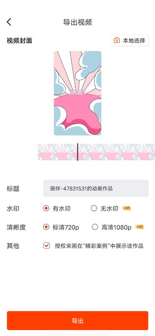 5、然后可以自己选择视频封面、标题等设置,完成后点击下方“导出”按钮。