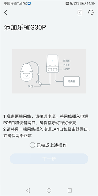 将设备通过网线接入网络后,在App中手动完成设备绑定与配置。