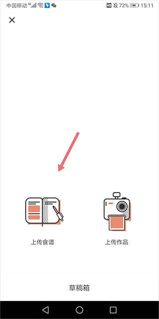 1、用户同样是进入到应用的【我】页面中进行上传,只不过现在是点击【上传食谱】。