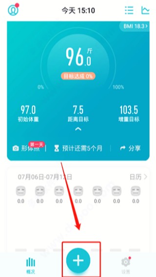 主页显示当前体重、BMI及初始体重,方便实时查看。