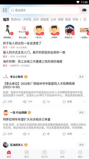 一览职业求职软件专注求职与职业发展,覆盖电力、石油化工、机械、印刷、百货等热门行业,服务超7000万专业技术人才。用户仅需简单填写资料,即可生成立体化简历,快速获取招聘信息,享受专业问答与便捷薪酬查询。一览职业求职软件手机版下载后,软件内提供高效、贴心的职业服务,让求职与职业管理更加轻松,实现随手掌握工作机会的便利。