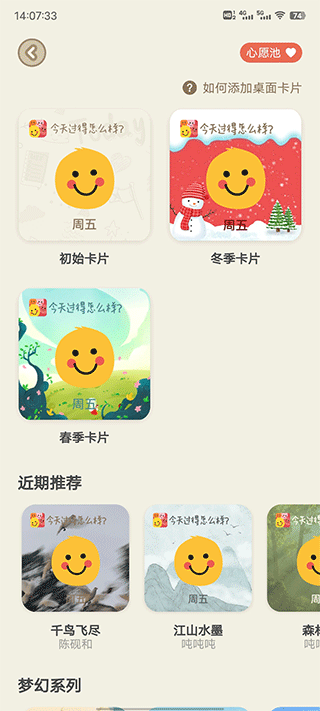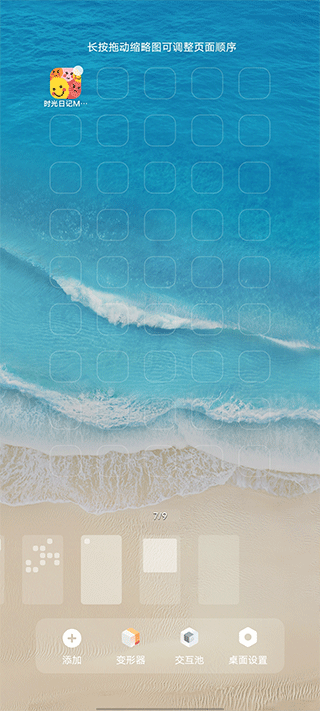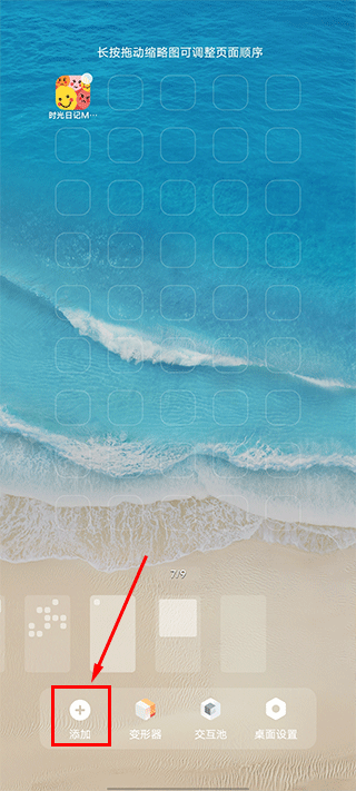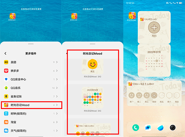 滑动找到时光日记Mood,挑选合适样式后点击或拖动至桌面即可。
