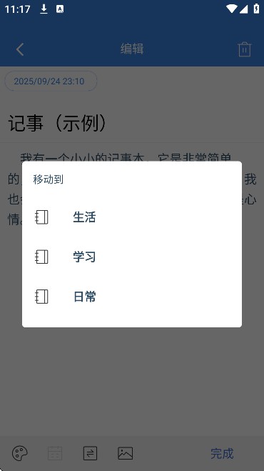 添加日期:新建笔记时点击“日历”图标,选择日期并保存,记录自动关联到该天。
