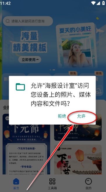 打开App,在首页浏览分类模板(如节日海报、活动海报),根据需求选择风格。